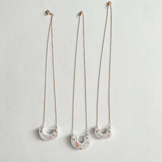 Hand painted necklace made of naturally sourced stoneware on an 18" nickel free 18k gold stainless steel chain.