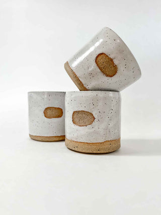 With an unglazed thumb and finger grip, this mug offers textile interest of the natural pottery against your grip allowing for comfortable, easy, sipping.